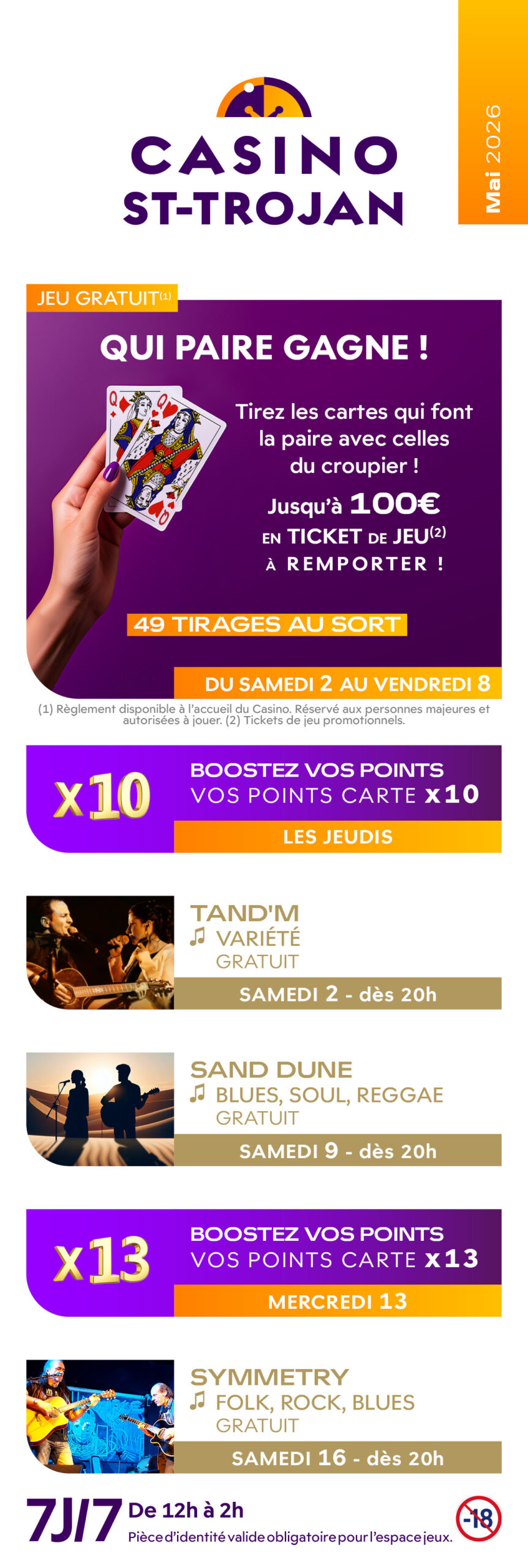 Plus facilement gagnantes, car elles portent sur plusieurs numéros à la fois mais engendrent des gains moins élevés. Dans ce cas, placez vos jetons virtuels sur : Chances simples : Rouge, Noir, Pair, Impair, Manque ou Passe. Le gain est de 1 x la mise. Chances multiples : douzaines (ou lignes entières) ou à l’intersection de 2 douzaines (ou de 2 lignes entières) pour 24 numéros joués. Le gain est de 2 x sa mise pour la douzaine (ou la ligne) et de ½ fois sa mise pour les douzaines à cheval (ou les lignes à cheval) soit 24 numéros joués.L’objectif du jeu est de deviner sur quel numéro la boule lancée dans le cylindre va s’arrêter. Version simplifiée de la roulette anglaise, ce jeu permet de miser non plus sur 37 numéros mais sur 9. Ces 9 numéros allant de 1 à 9 sont répétés 4 fois chacun dans le cylindre.