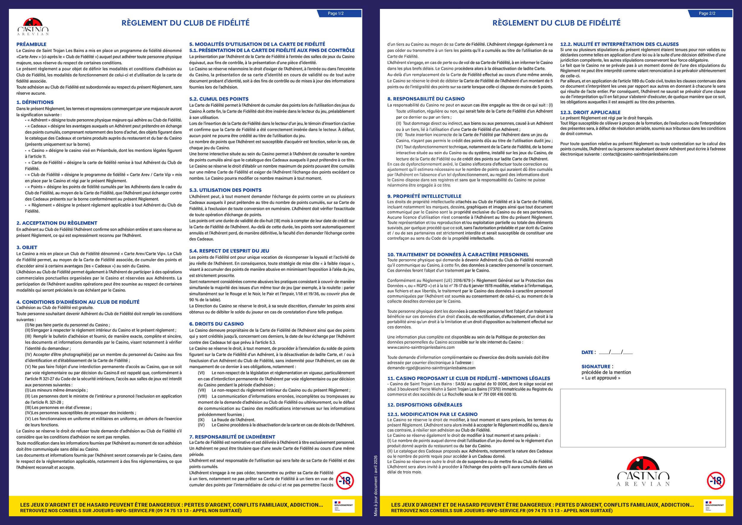 Son utilisation est soumise au respect des conditions générales d’utilisation et reste la propriété du casino.